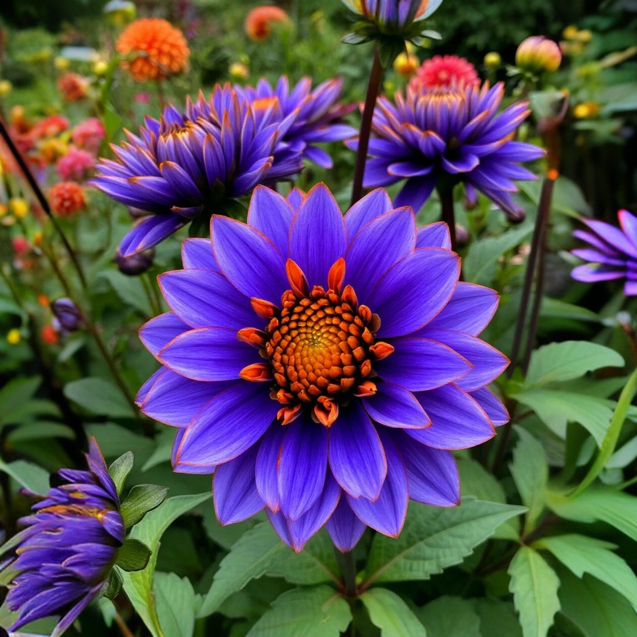 Оформление цветников и клумб: Георгины прекрасно сочетаются с другими однолетними и многолетними растениями.