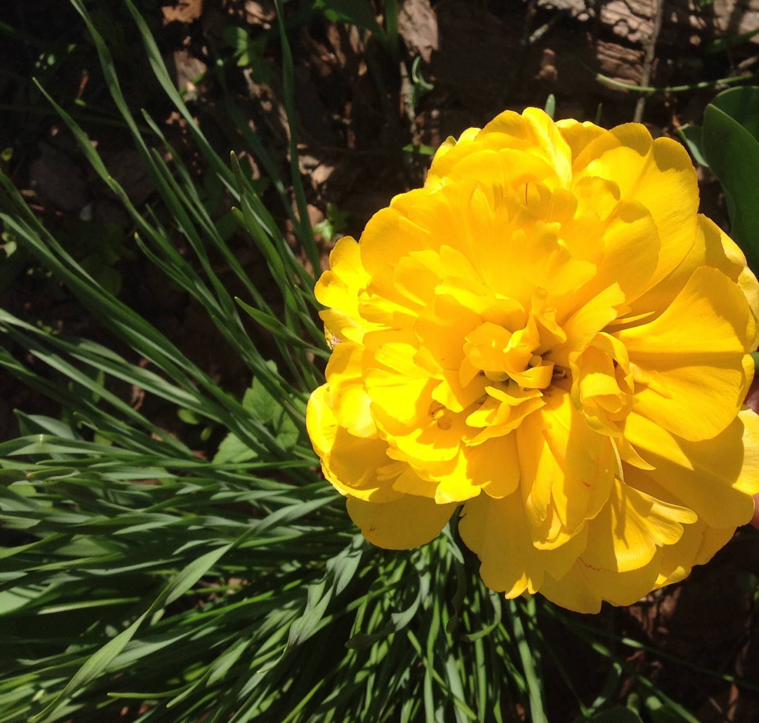 Потрясающий среднецветущий гибрид входит в группу Махровые нарциссы. В высоту он достигает до 35 см, а в ширину – 10 – 20 см. Листья глубокой сине-зеленой окраски. Цветки образуются махровые, крупного размера. Они имеют двойное количество лепестков и золотистую гофрированную коронку. Доли околоцветника широкие, окрашенные в насыщенный лимонно-желтый оттенок, с закругленными концами. Цветки размещены горизонтально и источают сладкий аромат. На одном цветоносе образуется по 3 – 4 эффектных бутончика.