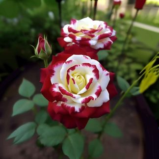 Представляем вашему вниманию розу “Роял Глом” – сорт, который поражает своей величественной красотой и эффектным контрастом. Эта роза словно королевская особа: её тёмные, красные лепестки у основания раскрываются, являя нежную белую сердцевину с яркими красными акцентами, создавая поистине роскошное зрелище. “Роял Глом” – это выбор для тех, кто ценит благородство, стремится создать в саду атмосферу величия и готов восхищаться великолепием каждого цветка.